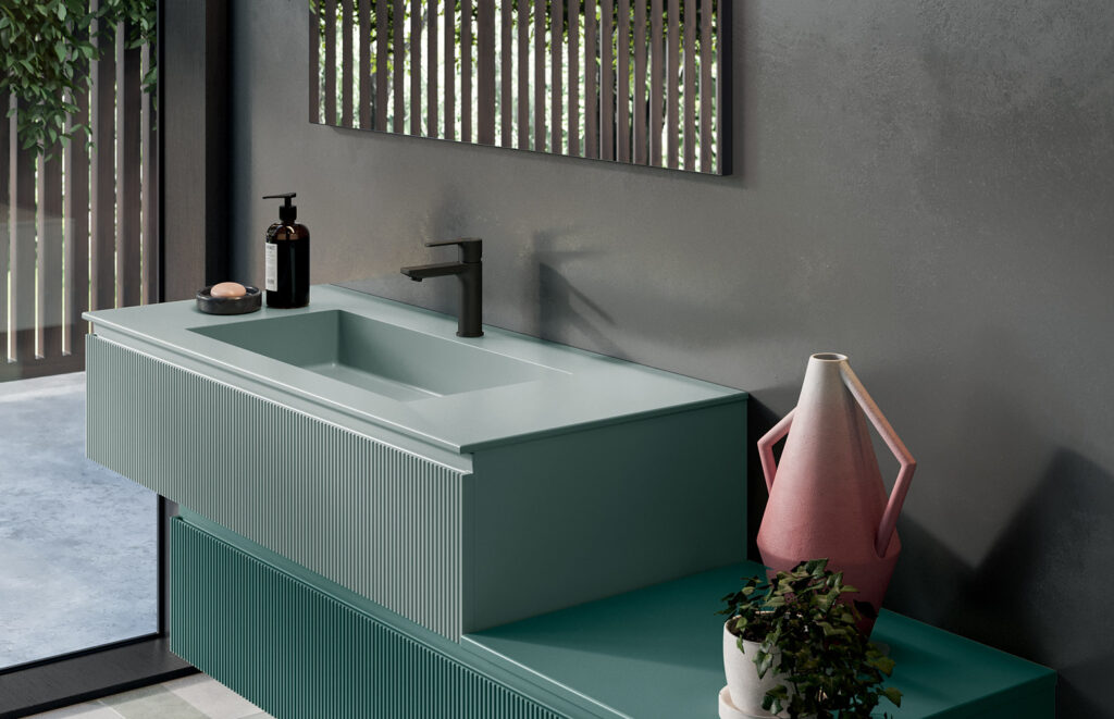 Con un’estetica pulita, proporzioni equilibrate e materiali di alta qualità, questa collezione interpreta l’arredo bagno come un’esperienza visiva e sensoriale.